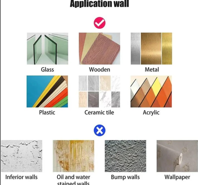 • সব ধরণের মসৃণ প্রাচীর পৃষ্ঠের জন্য উপযুক্ত, শক্ত কাঠ এবং কঠিন দেয়ালের জন্য উপযুক্ত